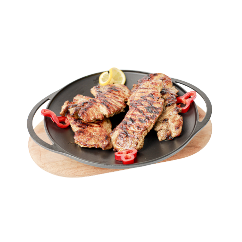 Savurați Mușchiul de Porc la Grătar, un preparat care aduce laolaltă frăgezimea cărnii de porc și aroma intensă a grătarului. Gătit perfect, acest mușchi de porc este marinad cu condimente alese și ierburi aromatice, iar fiecare feliuță este searbă cu o crustă crocantă și un interior suculent. Perfect pentru o masă de familie sau o cină alături de prieteni, mușchiul de porc la grătar este servit alături de garnituri delicioase, care completează perfect gustul său. Fiecare mușchi de porc este o promisiune de savoare pură!